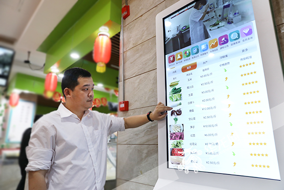???公共查詢觸摸電子屏,可以查詢自己購買的蔬菜的產(chǎn)地、價格等信息。華龍網(wǎng)-新重慶客戶端記者 謝鵬 攝